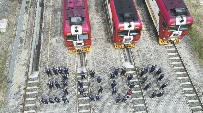 Railway workers from China and Kenya stand before locomotives and form the number “3000” at the locomotive operation and maintenance yard in Nairobi on Aug 19, marking 3,000 days of safe operation of the Mombasa-Nairobi Standard Gauge Railway. YANG GUANG/XINHUA